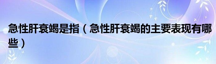 大家好,linda来为大家解答以上的问题。急性肝衰竭是指,急性肝衰竭的主要表现有哪些很多人还不知道,现在让我们一起来看看吧!