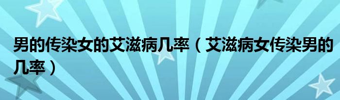 大家好,linda来为大家解答以上的问题。男的传染女的艾滋病几率,艾滋病女传染男的几率很多人还不知道,现在让我们一起来看看吧!