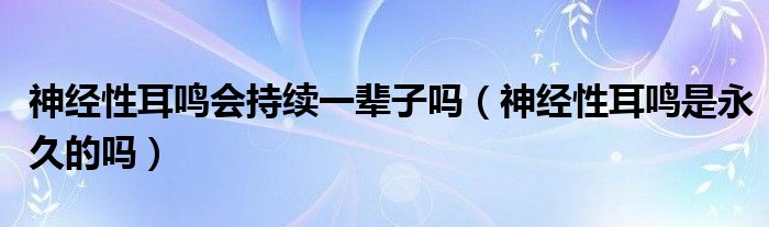大家好,linda来为大家解答以上的问题。神经性耳鸣会持续一辈子吗,神经性耳鸣是永久的吗很多人还不知道,现在让我们一起来看看吧!