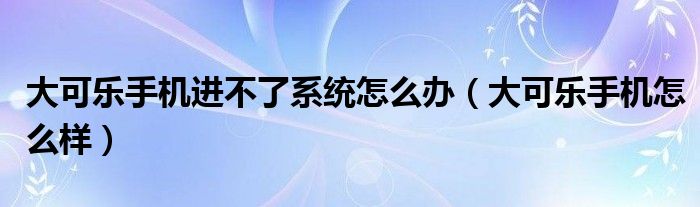 大家好,雨雨来为大家解答以上问题,大可乐手机进不了系统怎么办,大可乐手机怎么样很多人还不知道,现在让我们一起来看看吧!
