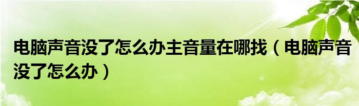 大家好,雨雨来为大家解答以上问题,电脑声音没了怎么办主音量在哪找,电脑声音没了怎么办很多人还不知道,现在让我们一起来看看吧!