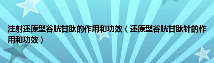 大家好,linda来为大家解答以上的问题。注射还原型谷胱甘肽的作用和功效,还原型谷胱甘肽针的作用和功效很多人还不知道,现在让我们一起来看看吧!