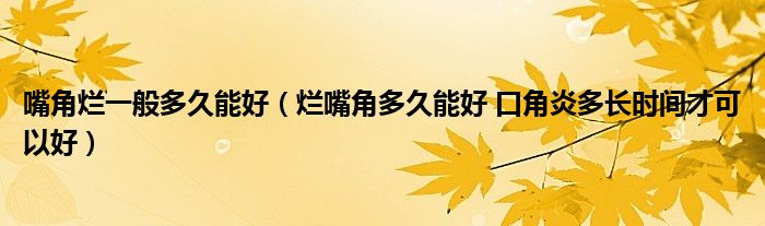 嘴角烂一般多久能好(烂嘴角多久能好 口角炎多长时间才可以好)