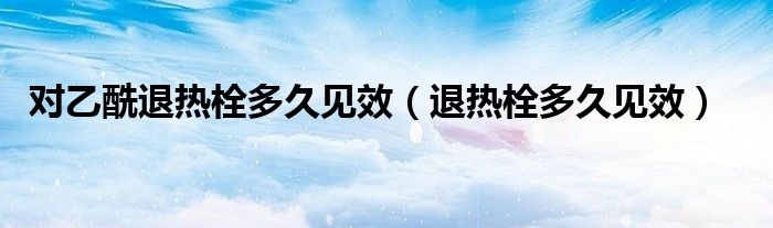 大家好,linda来为大家解答以上的问题。对乙酰退热栓多久见效,退热栓多久见效很多人还不知道,现在让我们一起来看看吧!