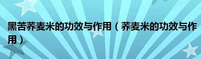 黑苦荞麦米的功效与作用(荞麦米的功效与作用)