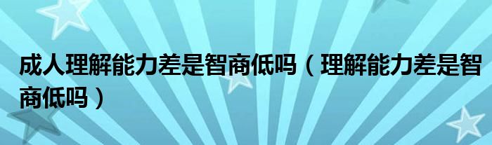 大家好,linda来为大家解答以上的问题。成人理解能力差是智商低吗,理解能力差是智商低吗很多人还不知道,现在让我们一起来看看吧!