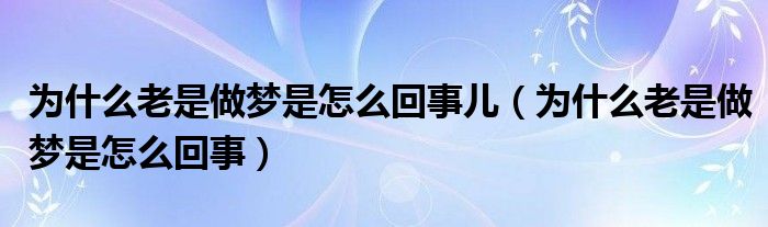 大家好,linda来为大家解答以上的问题。为什么老是做梦是怎么回事儿,为什么老是做梦是怎么回事很多人还不知道,现在让我们一起来看看吧!
