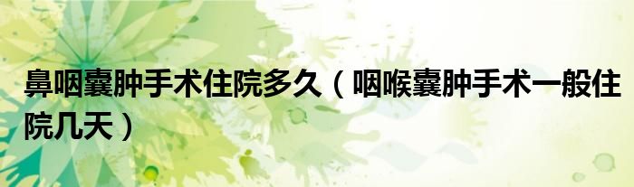 大家好,linda来为大家解答以上的问题。鼻咽囊肿手术住院多久,咽喉囊肿手术一般住院几天很多人还不知道,现在让我们一起来看看吧!