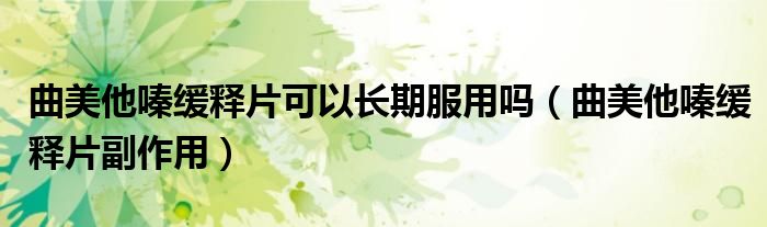 大家好,linda来为大家解答以上的问题。曲美他嗪缓释片可以长期服用吗,曲美他嗪缓释片副作用很多人还不知道,现在让我们一起来看看吧!