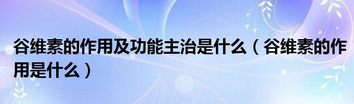 谷维素的作用及功能主治是什么(谷维素的作用是什么)