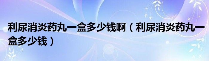 利尿消炎药丸一盒多少钱啊(利尿消炎药丸一盒多少钱)