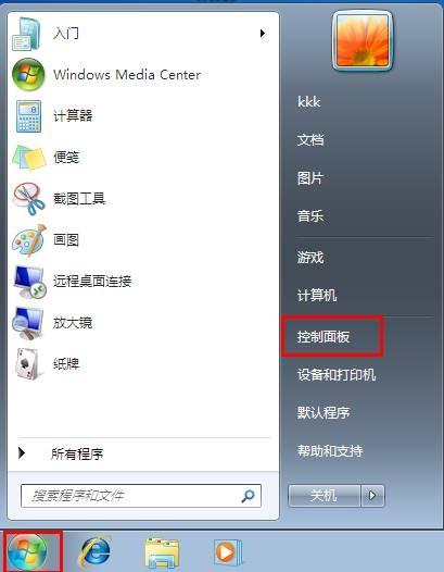 1.单击左下角的开始菜单,选择“控制面板”