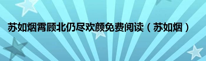 大家好,小晋来为大家解答以下问题,关于苏如烟霄顾北仍尽欢颜免费阅读,苏如烟很多人还不知道,今天让我们一起来看看吧!