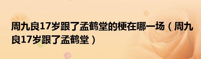 大家好,小晋来为大家解答以下问题,关于周九良17岁跟了孟鹤堂的梗在哪一场,周九良17岁跟了孟鹤堂很多人还不知道,今天让我们一起来看看吧!