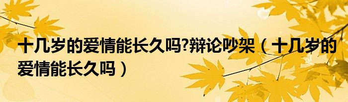 大家好,小晋来为大家解答以下问题,关于十几岁的爱情能长久吗?辩论吵架,十几岁的爱情能长久吗很多人还不知道,今天让我们一起来看看吧!