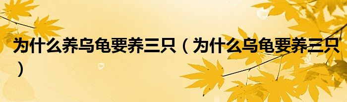 大家好,小晋来为大家解答以下问题,关于为什么养乌龟要养三只,为什么乌龟要养三只很多人还不知道,今天让我们一起来看看吧!