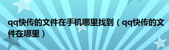 大家好,小晋来为大家解答以下问题,关于qq快传的文件在手机哪里找到,qq快传的文件在哪里很多人还不知道,今天让我们一起来看看吧!