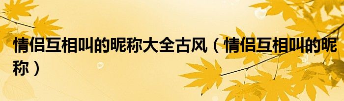 大家好,小晋来为大家解答以下问题,关于情侣互相叫的昵称大全古风,情侣互相叫的昵称很多人还不知道,今天让我们一起来看看吧!