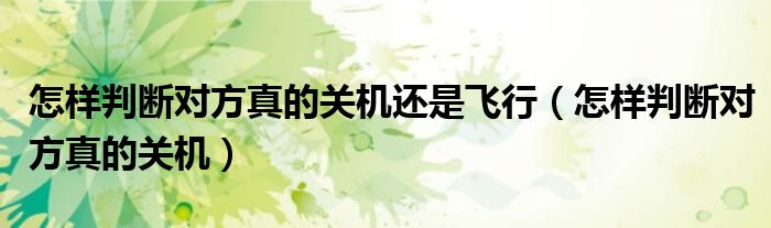 大家好,小晋来为大家解答以下问题,关于怎样判断对方真的关机还是飞行,怎样判断对方真的关机很多人还不知道,今天让我们一起来看看吧!