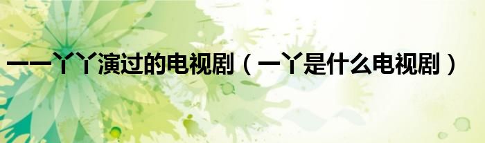 大家好,小晋来为大家解答以下问题,关于一一丫丫演过的电视剧,一丫是什么电视剧很多人还不知道,今天让我们一起来看看吧!