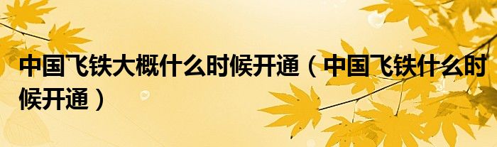大家好,小晋来为大家解答以下问题,关于中国飞铁大概什么时候开通,中国飞铁什么时候开通很多人还不知道,今天让我们一起来看看吧!