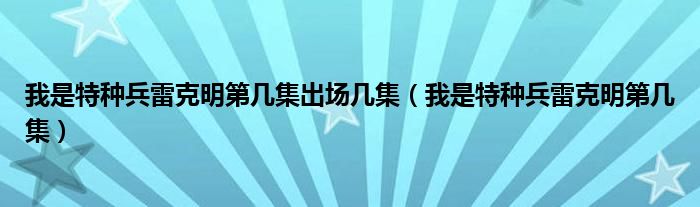 大家好,小晋来为大家解答以下问题,关于我是特种兵雷克明第几集出场几集,我是特种兵雷克明第几集很多人还不知道,今天让我们一起来看看吧!