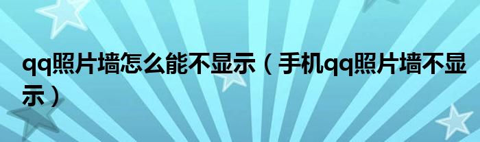 大家好,小晋来为大家解答以下问题,关于qq照片墙怎么能不显示,手机qq照片墙不显示很多人还不知道,今天让我们一起来看看吧!