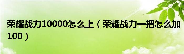 大家好,小晋来为大家解答以下问题,关于荣耀战力10000怎么上,荣耀战力一把怎么加100很多人还不知道,今天让我们一起来看看吧!