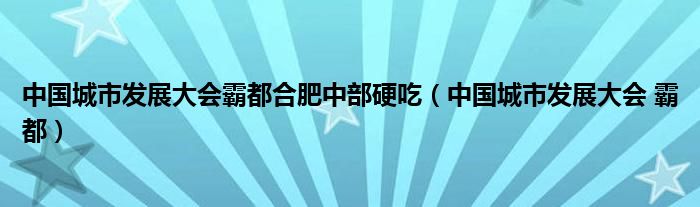 中国城市发展大会霸都合肥中部硬吃(中国城市发展大会 霸都)