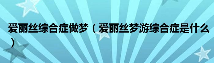 大家好,小晋来为大家解答以下问题,关于爱丽丝综合症做梦,爱丽丝梦游综合症是什么很多人还不知道,今天让我们一起来看看吧!