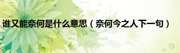大家好,小晋来为大家解答以下问题,关于谁又能奈何是什么意思,奈何今之人下一句很多人还不知道,今天让我们一起来看看吧!