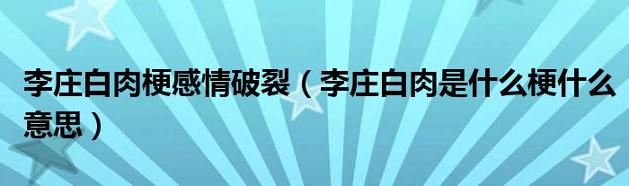 大家好,小晋来为大家解答以下问题,关于李庄白肉梗感情破裂,李庄白肉是什么梗什么意思很多人还不知道,今天让我们一起来看看吧!