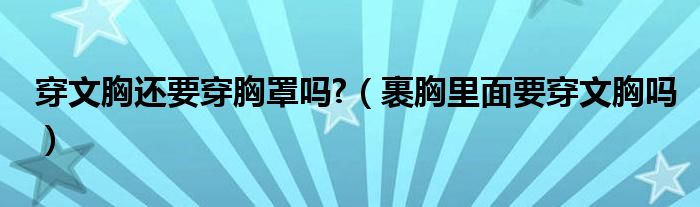 大家好,小晋来为大家解答以下问题,关于穿文胸还要穿胸罩吗?,裹胸里面要穿文胸吗很多人还不知道,今天让我们一起来看看吧!