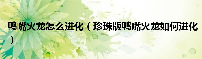 大家好,小晋来为大家解答以下问题,关于鸭嘴火龙怎么进化,珍珠版鸭嘴火龙如何进化很多人还不知道,今天让我们一起来看看吧!
