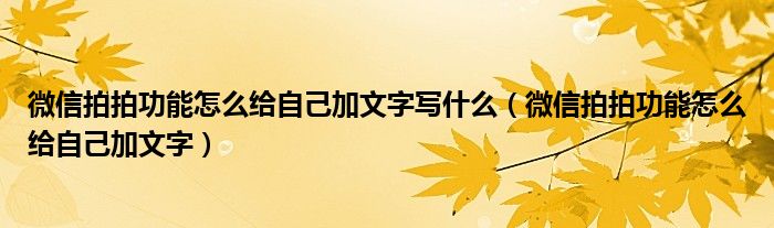 微信拍拍功能怎么给自己加文字写什么,微信拍拍功能怎么给自己加文字很多人还不知道,乐乐来为大家解答以上问题,现在让我们一起来看看吧!