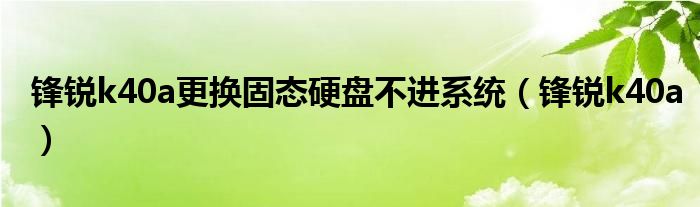 锋锐k40a更换固态硬盘不进系统(锋锐k40a)
