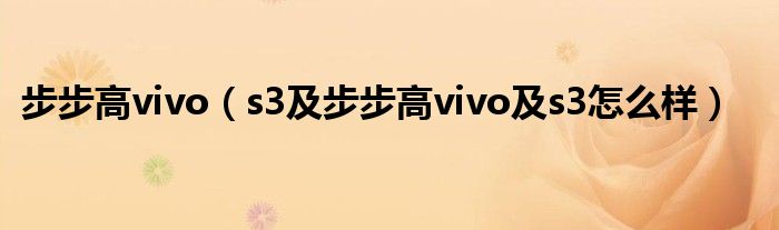 大家好,小常来为大家解答以上问题。步步高vivo,s3及步步高vivo及s3怎么样很多人还不知道,现在让我们一起来看看吧!