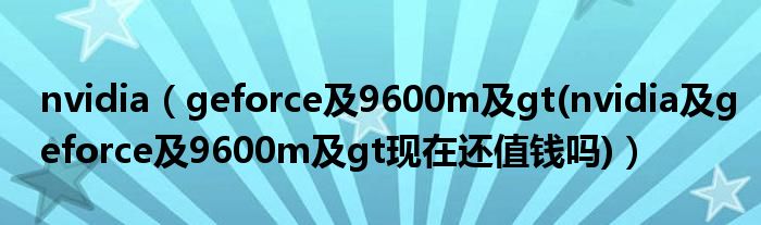 大家好,小常来为大家解答以上问题。nvidia,geforce及9600m及gt(nvidia及geforce及9600m及gt现在还值钱吗)很多人还不知道,现在让我们一起来看看吧!