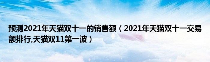 大家好,小常来为大家解答以上问题。预测2021年天猫双十一的销售额,2021年天猫双十一交易额排行,天猫双11第一波很多人还不知道,现在让我们一起来看看吧!