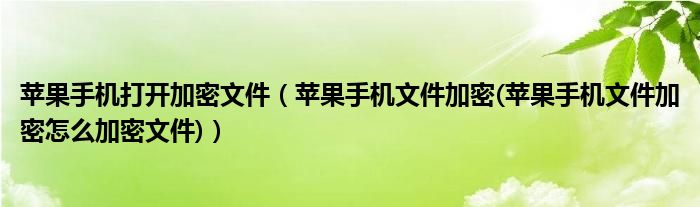 大家好,小常来为大家解答以上问题。苹果手机打开加密文件,苹果手机文件加密(苹果手机文件加密怎么加密文件)很多人还不知道,现在让我们一起来看看吧!
