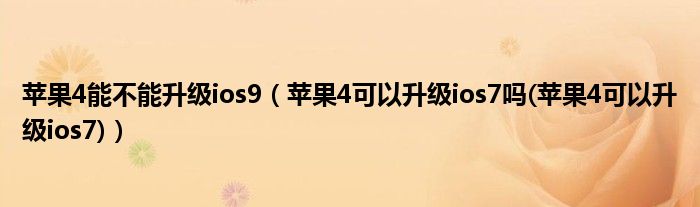 大家好,小常来为大家解答以上问题。苹果4能不能升级ios9,苹果4可以升级ios7吗(苹果4可以升级ios7)很多人还不知道,现在让我们一起来看看吧!