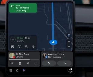 谷歌表示,显示屏的主要区域将分为三个部分,两个板块专门用于显示导航和媒体控件。Google认为驾驶员在驾驶时会优先考虑哪些功能——而且它们是正确的。另一端将打开你当前打开的应用程序,很可能是谷歌地图甚至Waze。
