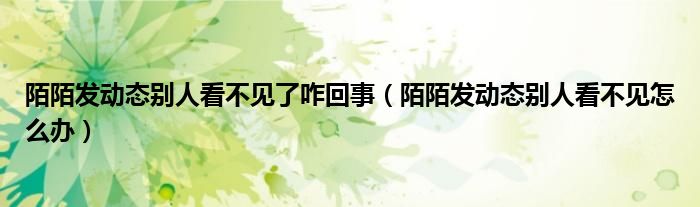 大家好,跳跳为你解答以上问题。陌陌发动态别人看不见了咋回事,陌陌发动态别人看不见怎么办这个问题很多人还不知道,现在让我们一起来看看吧!