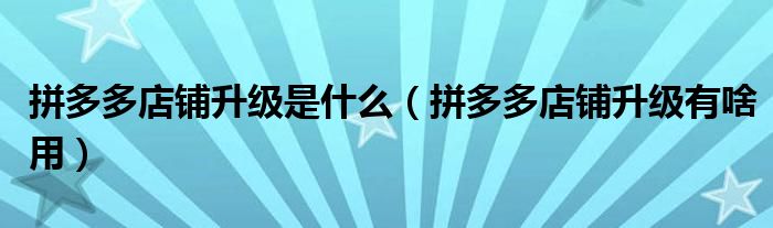 大家好,跳跳为你解答以上问题。拼多多店铺升级是什么,拼多多店铺升级有啥用这个问题很多人还不知道,现在让我们一起来看看吧!