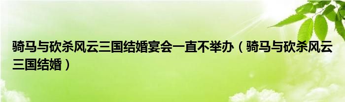 大家好,小晋来为大家解答以下问题,关于骑马与砍杀风云三国结婚宴会一直不举办,骑马与砍杀风云三国结婚很多人还不知道,今天让我们一起来看看吧!