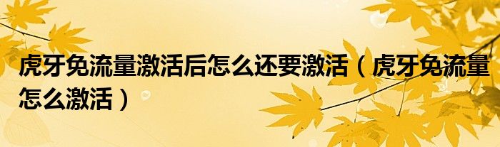 大家好,跳跳为你解答以上问题。虎牙免流量激活后怎么还要激活,虎牙免流量怎么激活这个问题很多人还不知道,现在让我们一起来看看吧!