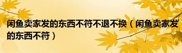 大家好,跳跳为你解答以上问题。闲鱼卖家发的东西不符不退不换,闲鱼卖家发的东西不符这个问题很多人还不知道,现在让我们一起来看看吧!