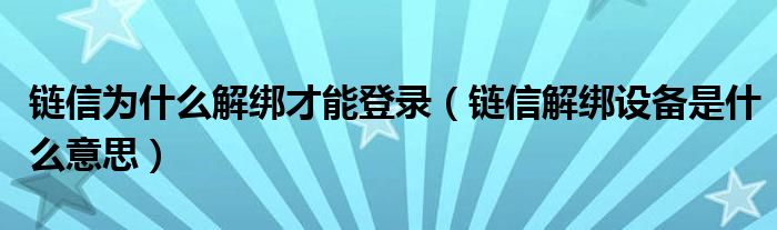 大家好,跳跳为你解答以上问题。链信为什么解绑才能登录,链信解绑设备是什么意思这个问题很多人还不知道,现在让我们一起来看看吧!