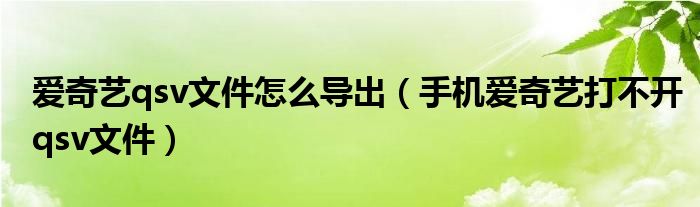 大家好,跳跳为你解答以上问题。爱奇艺qsv文件怎么导出,手机爱奇艺打不开qsv文件这个问题很多人还不知道,现在让我们一起来看看吧!