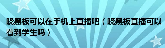 大家好,跳跳为你解答以上问题。晓黑板可以在手机上直播吧,晓黑板直播可以看到学生吗这个问题很多人还不知道,现在让我们一起来看看吧!